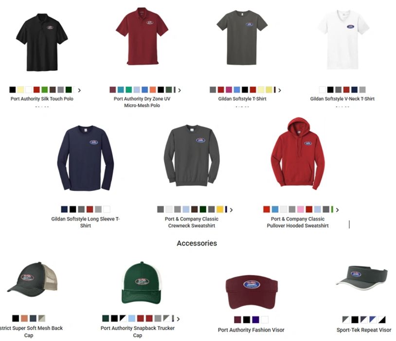 T-shirts, polos, sweat shirts, hoodies, caps and other options are now available in many styles, colors and most sizes. The FMC Logo can be embroidered or heat transfer.