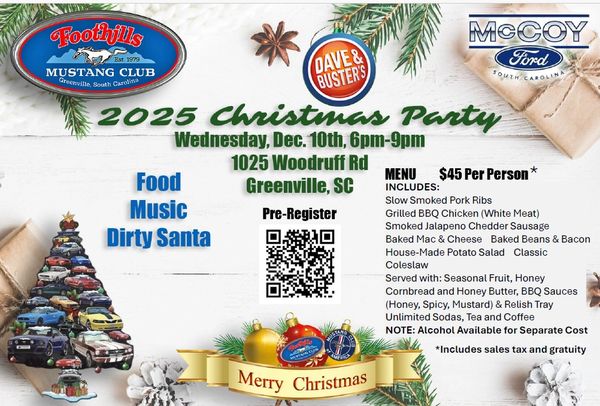 Join in this year's holiday festivities at our 2025 Christmas Party. Bring a wrapped gift valued at $20-$25 for the Dirty Santa Gift Exchange. Preregister and Prepay for the party by Clicking the button below.